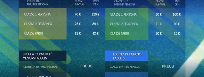 Ja tenim disponibles els preus de l’escola de pàdel d’aquesta nova temporada!